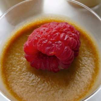 Fordel i plastglass og la det avkjøles i to timer. Pynt med et bær av noe slag.