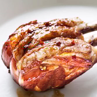 En kombinasjon der en sukkerlake med hvitvin og kanelstang gir spennende kontrast til blodige fileter.